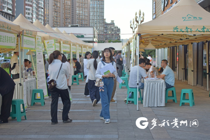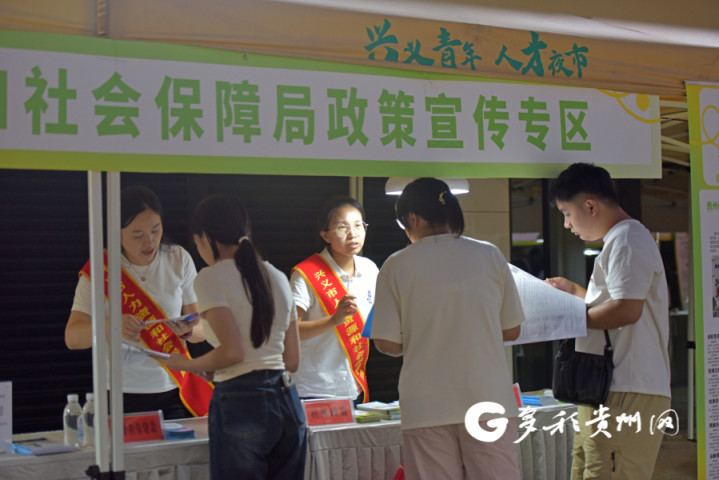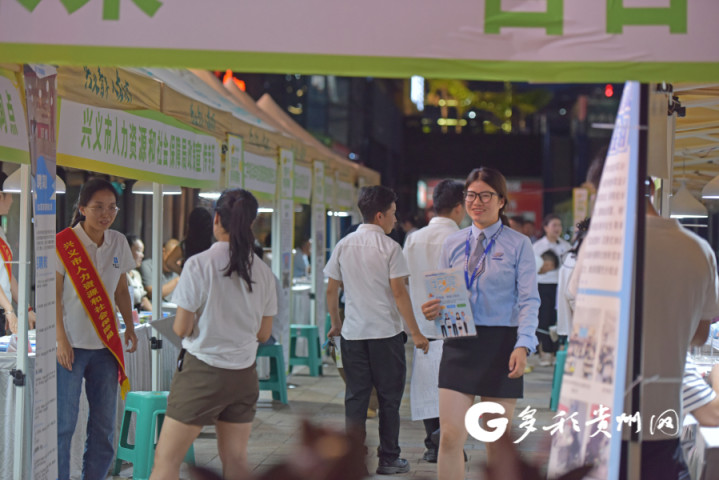 8月25日晚,2025年“职引未来?筑梦青春”百日千万夜间招聘会在兴义市欢乐橙购物中心门口举办。